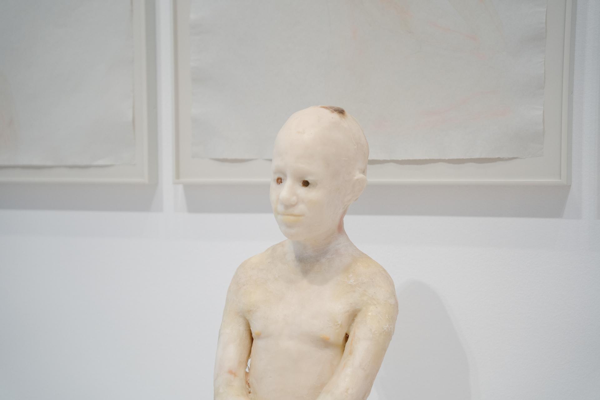 Girl first appeared in Smith’s solo show Reconstructing the Moon. Considering the visual reference to Puberty, (1894-95), this work arguably addresses the female cycle, one which mirrors the moon’s cycle. In addition to the subject matter, I believe it is important to note the material language. The wax figure and the light-handed drawings on paper slot into Smith’s material tradition—the translucence of the waxy material imbuing the work with a sense of vulnerability.