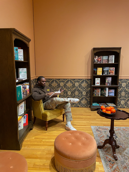 The book nook located inside the exhibition, Farm to Table: Art, Food, and Identity in the Age of Impressionism